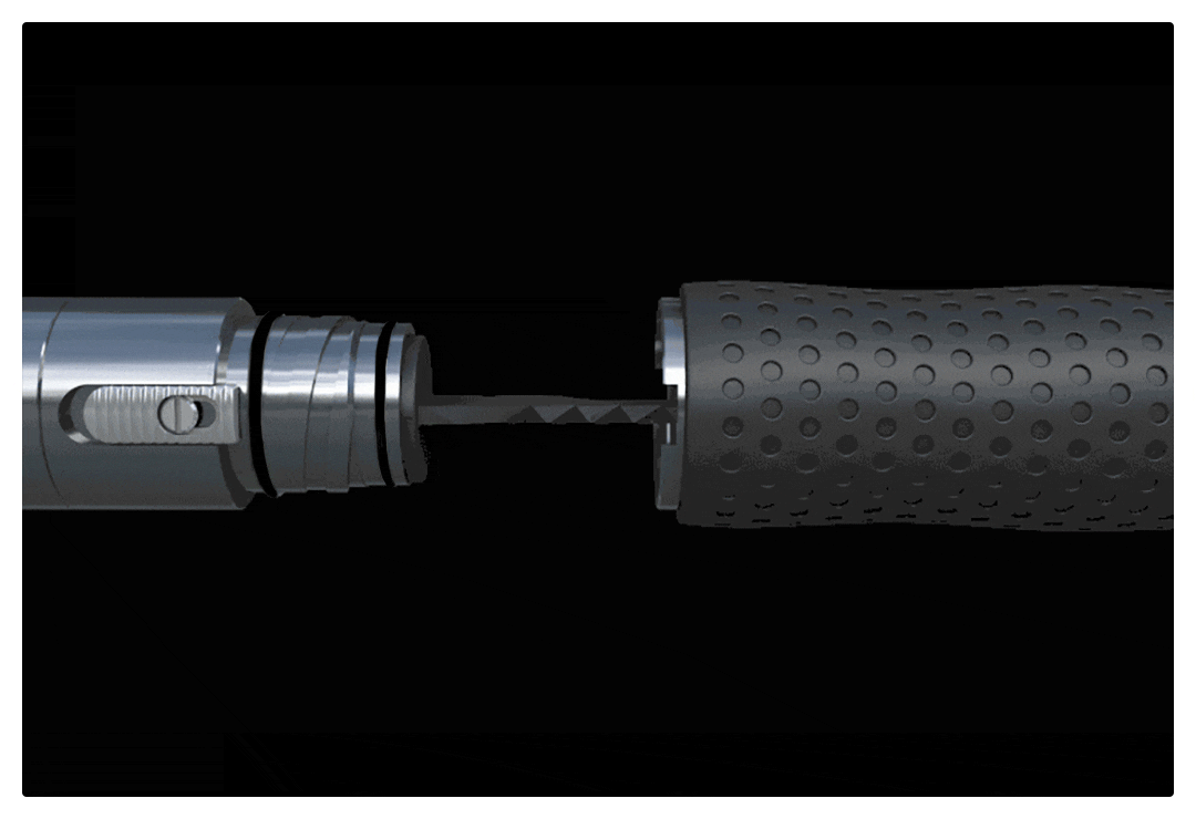Ручка кріпиться до лопати за допомогою запатентованого напівповоротного механізму буквально за секунду — набагато швидше, порівнюючи зі звичайною різзю. Таке кріплення вирізняється завидною міцністю, воно не розплутується й не ламається від ударів, даючи змогу використовувати лопату Zaofeng для найважчої роботи.