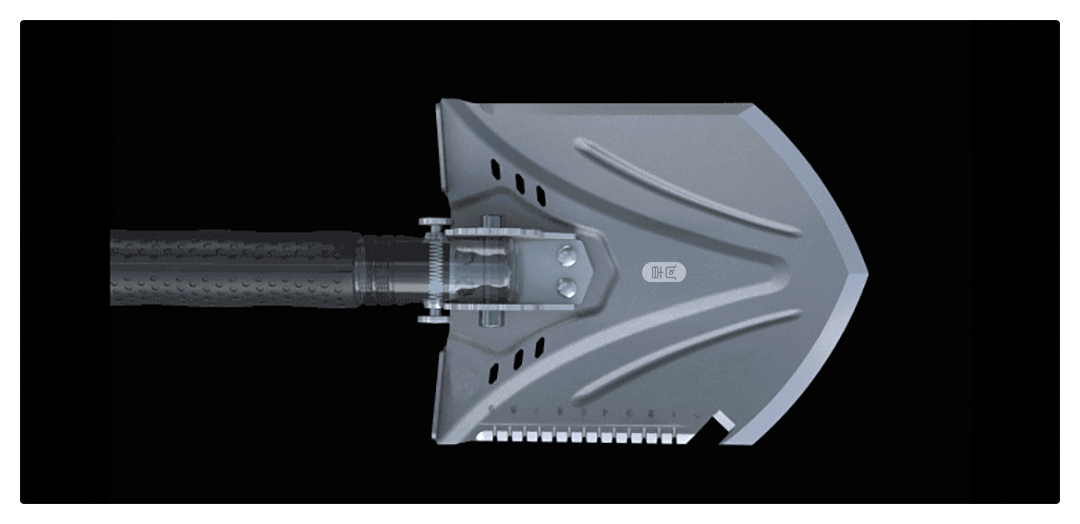 У хвостовій частині ручки лопати розміщений твердий ударний молот із вольфрамової сталі з гострою голкою для розбивання скла.